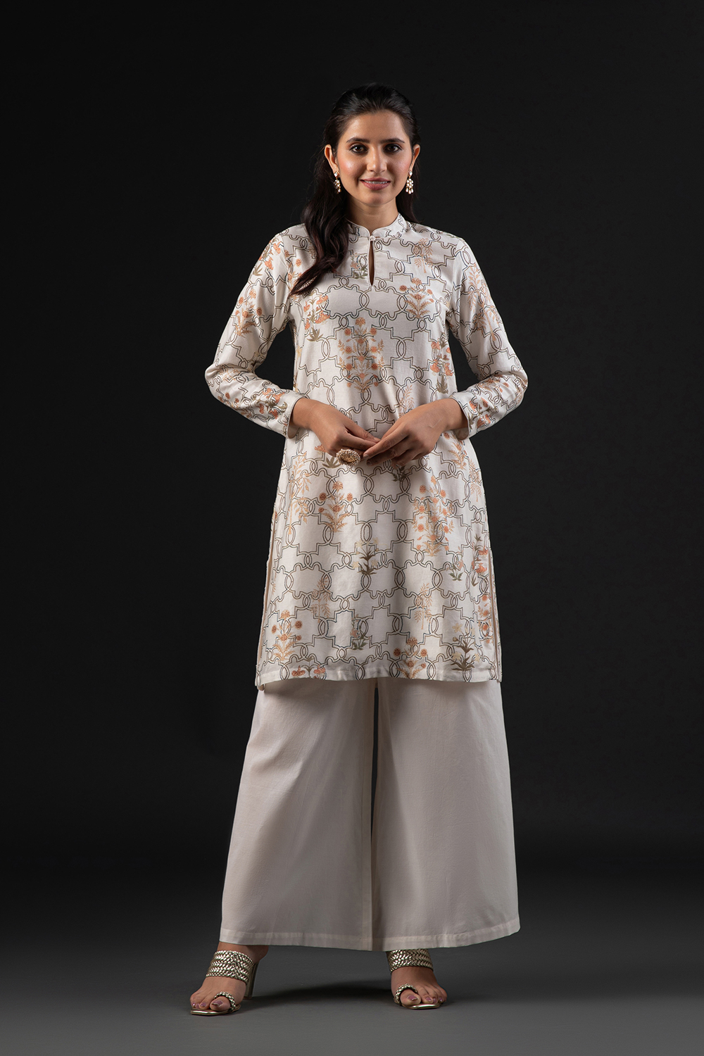 Rohit Bal Off White Cotton Silk Straight Printed Suit Set