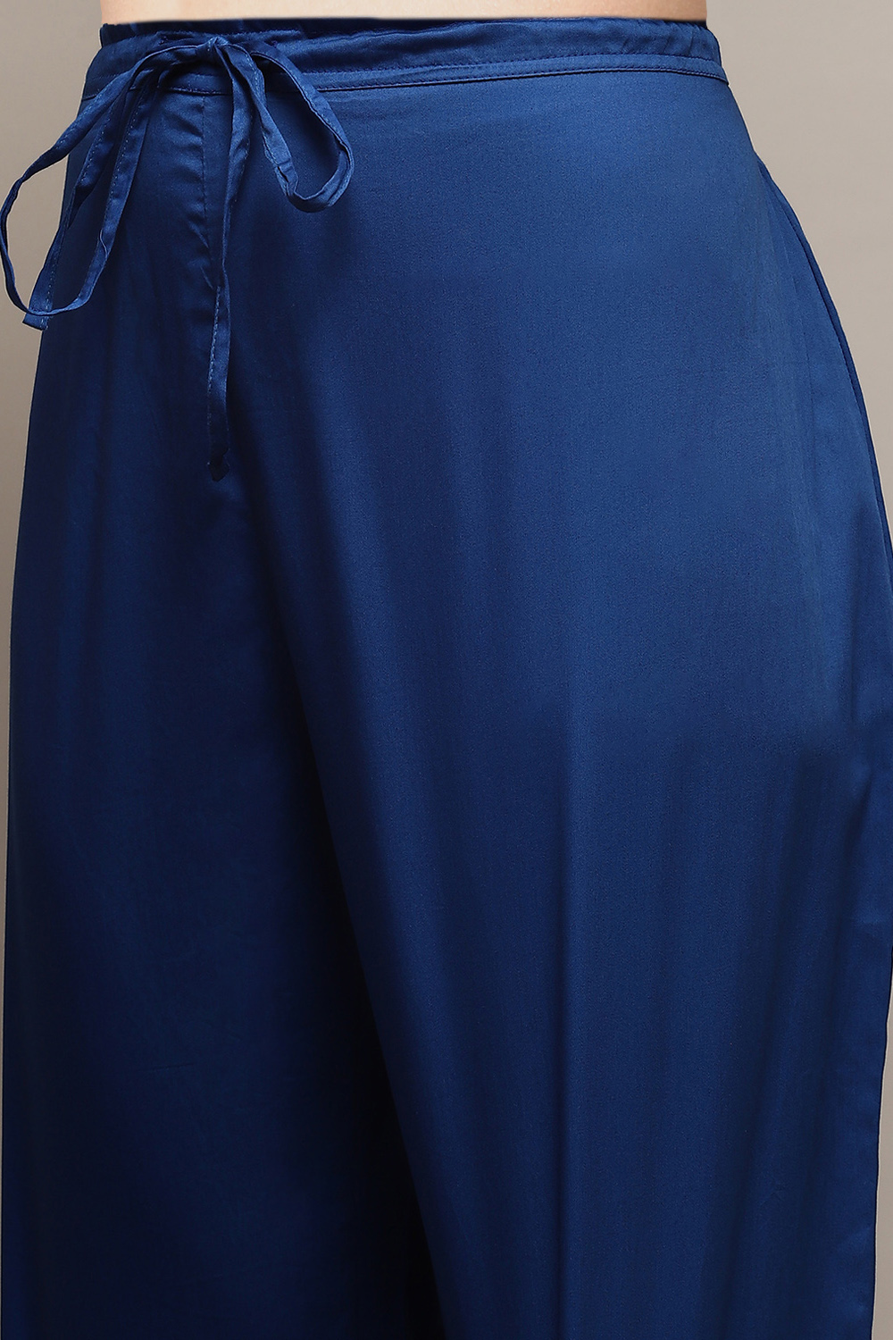 Royal Blue Polyester A-Line Printed Kurta Palazzo Suit Set