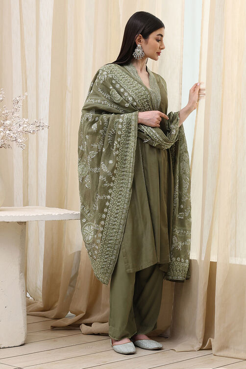 Sage Green Cotton Blend Straight Kurta Palazzo Suit Set image number 3