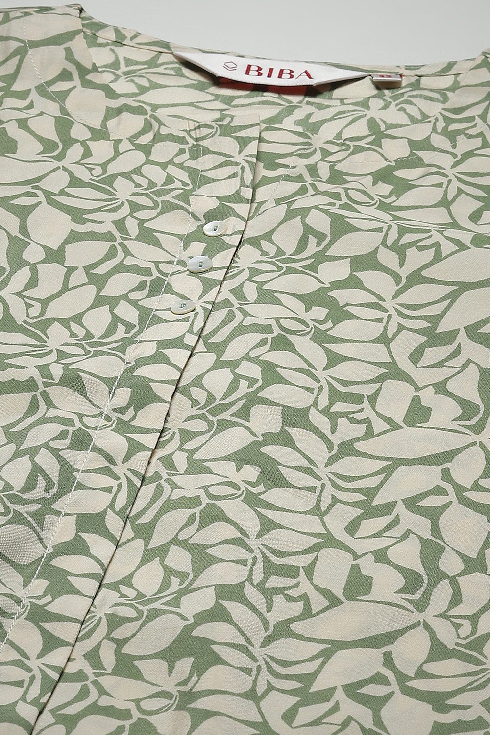 Make a bold impression with this chic straight-printed two-piece set that demands attention. Crafted from viscose fabric, it showcases elbow-length sleeves and a round neck for a flattering look. The set is adorned with vibrant leafy prints and features a stylish slit at the end. The matching palazzo adds a touch of elegance. The unique back design of the kurta sets it apart. Complete the ensemble with T-strap slip-ons and accessorise with beaded jewellery for a comfortable and stylish day out. Wash in cool water with a mild detergent.