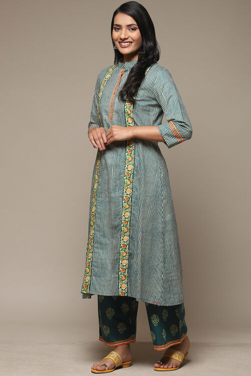 Teal Cotton A-Line Kurta Palazzo Suit Set