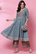 Teal Cotton Flared Kurta Set