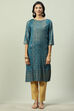 Teal Rayon Straight Printed Kurta