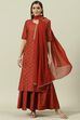 Terracotta Printed Straight Kurta Sharara Suit Set