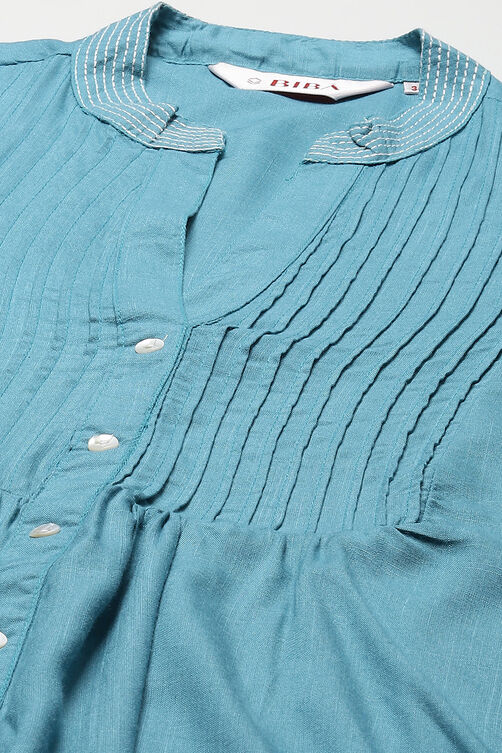 Turquoise Rayon Straight Kurta Salwar Suit Set