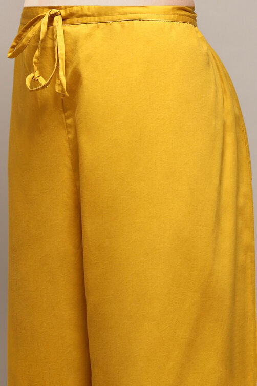 Yellow Cotton Silk Gathered Kurta Palazzo Suit Set